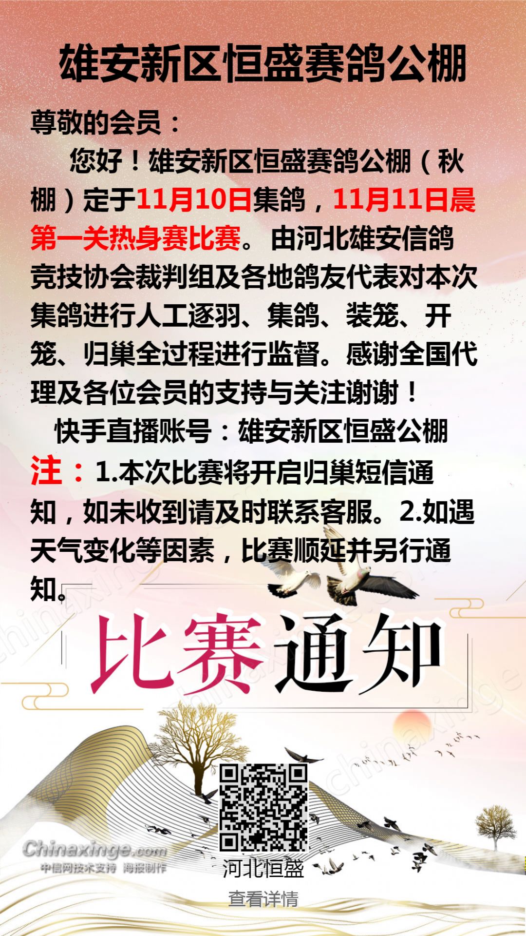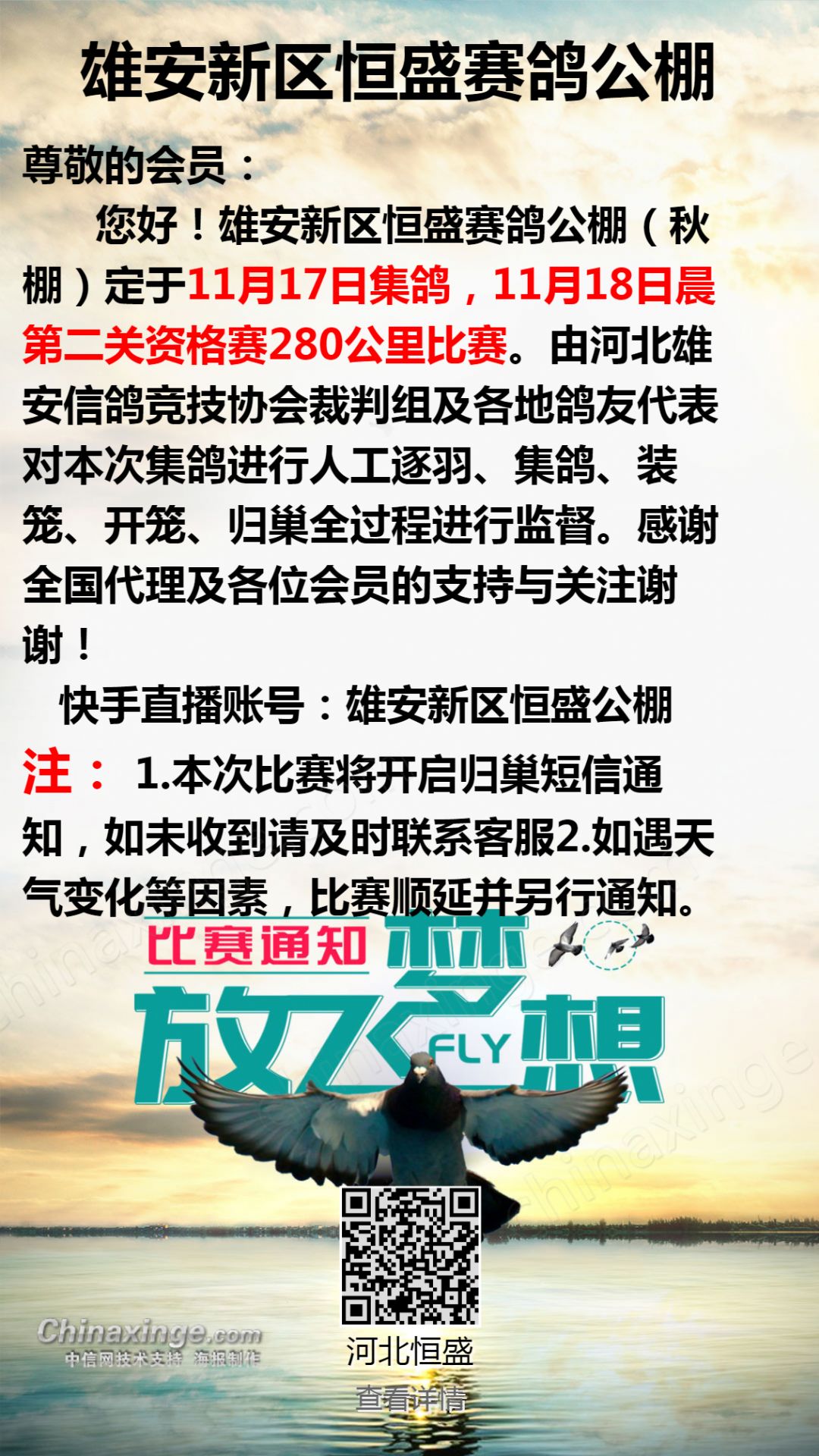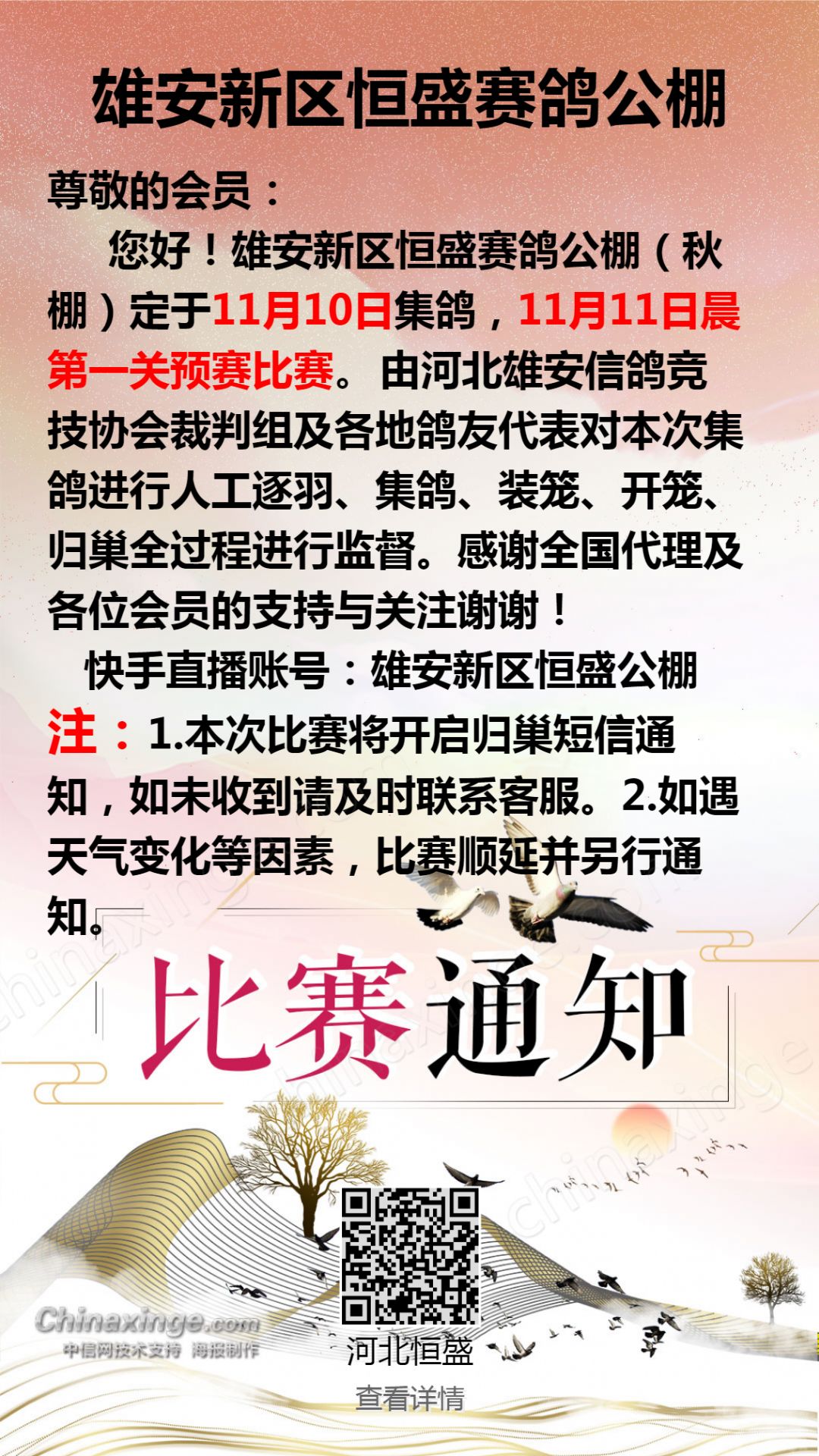 2025年雄安新区恒盛公棚(秋棚)第一关预赛比赛公告