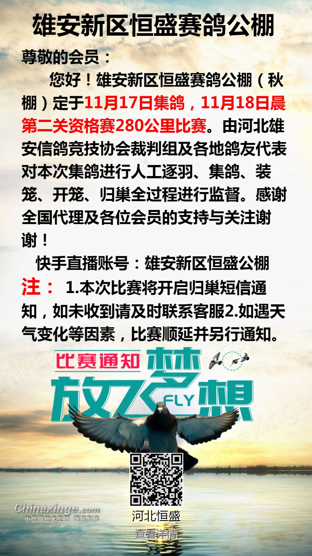 2025年雄安新区恒盛公棚第四关500公里决赛比赛公告