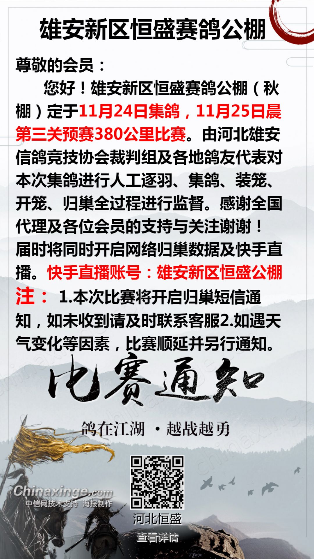 2025年雄安新区恒盛公棚第三关预赛380公里比赛公告