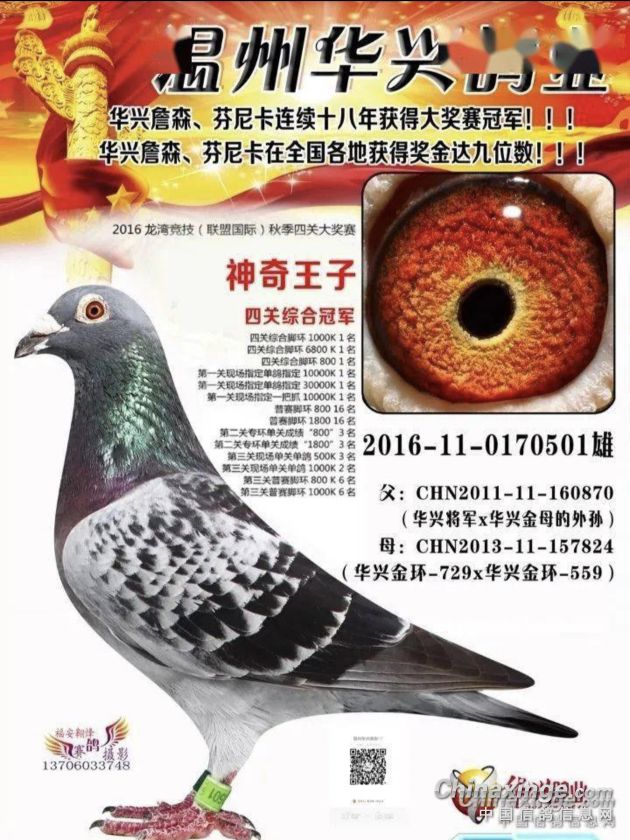 温州赛鸽名家华兴鸽业江建兴清棚,10岁的“神奇王子”最终以17W成交。