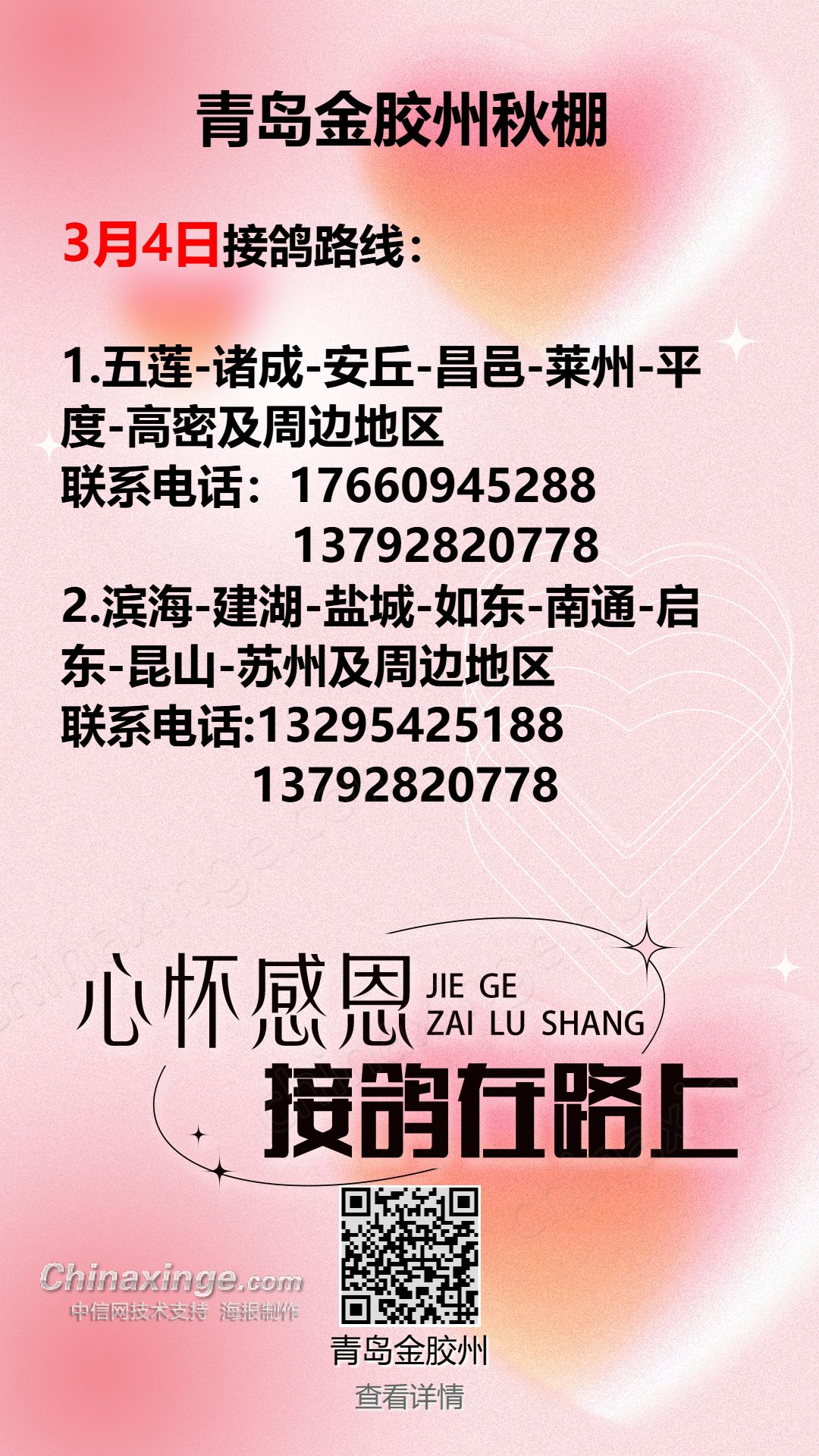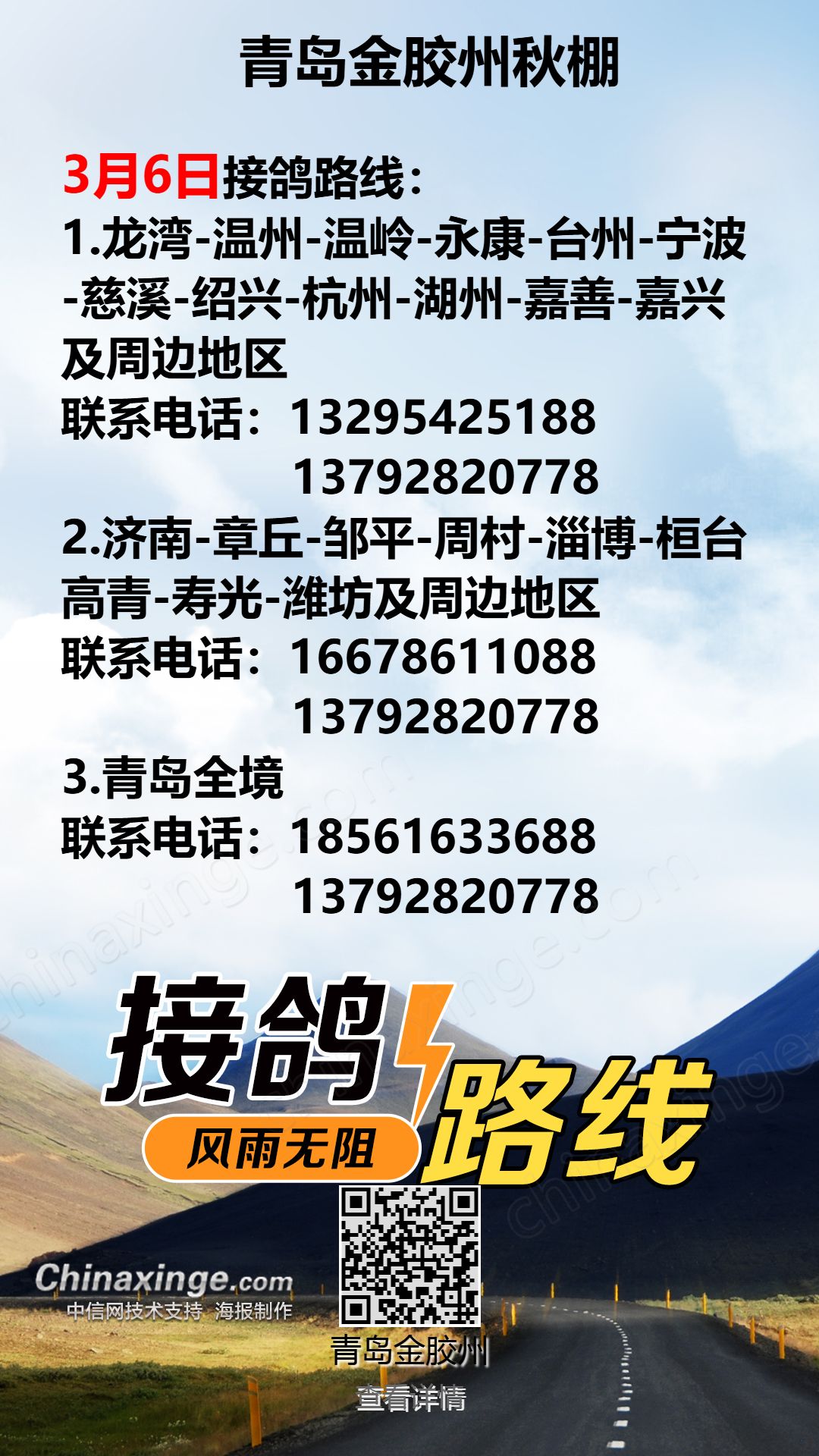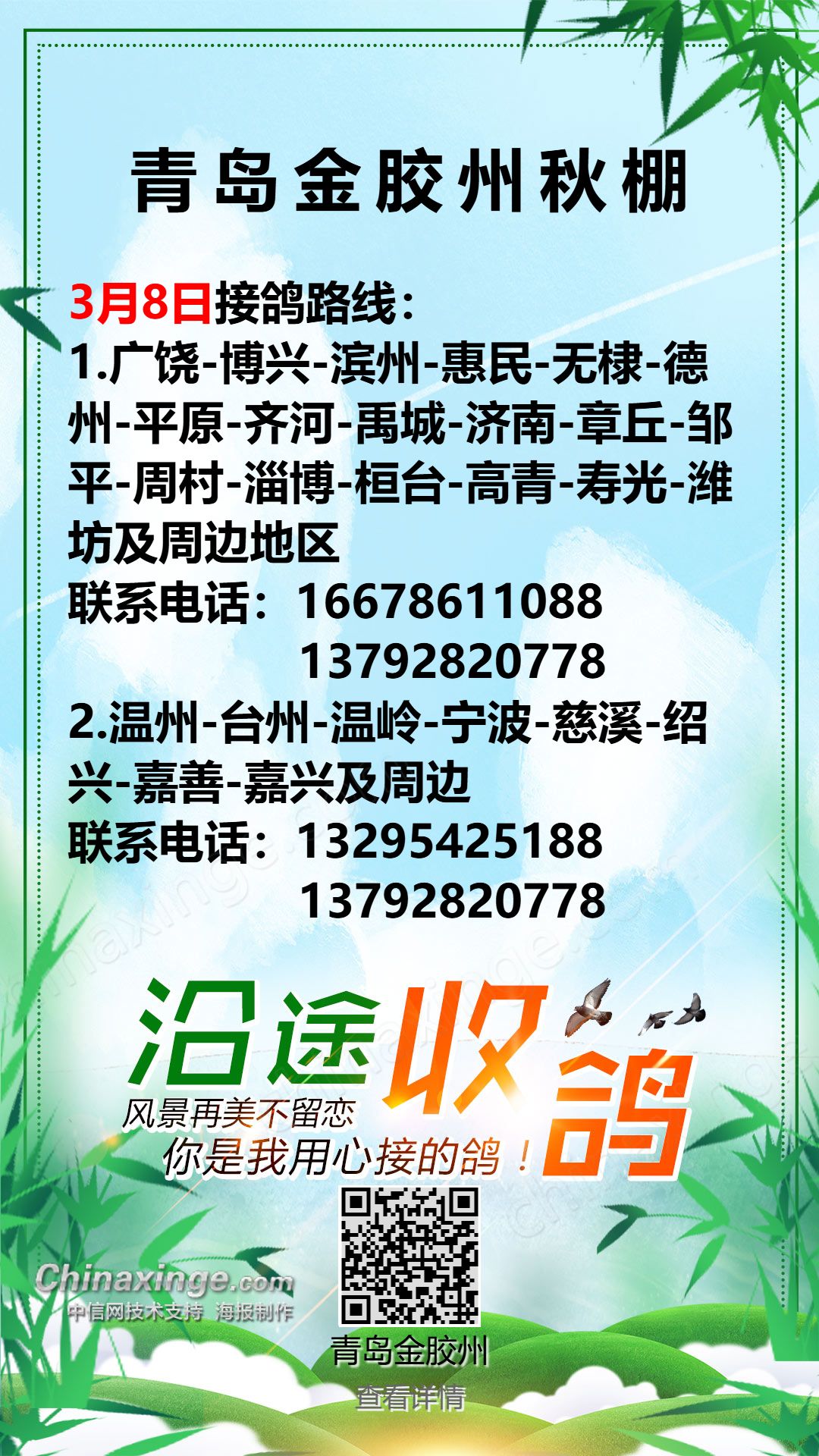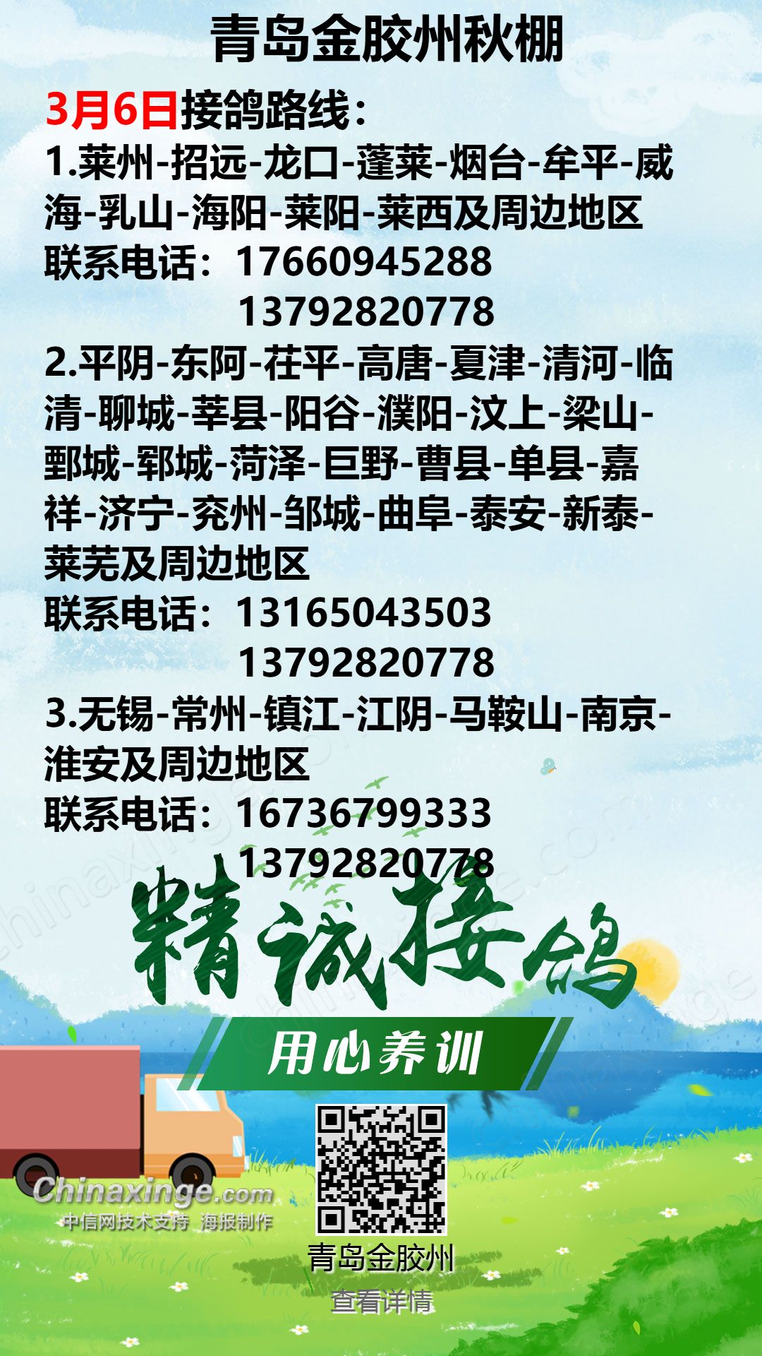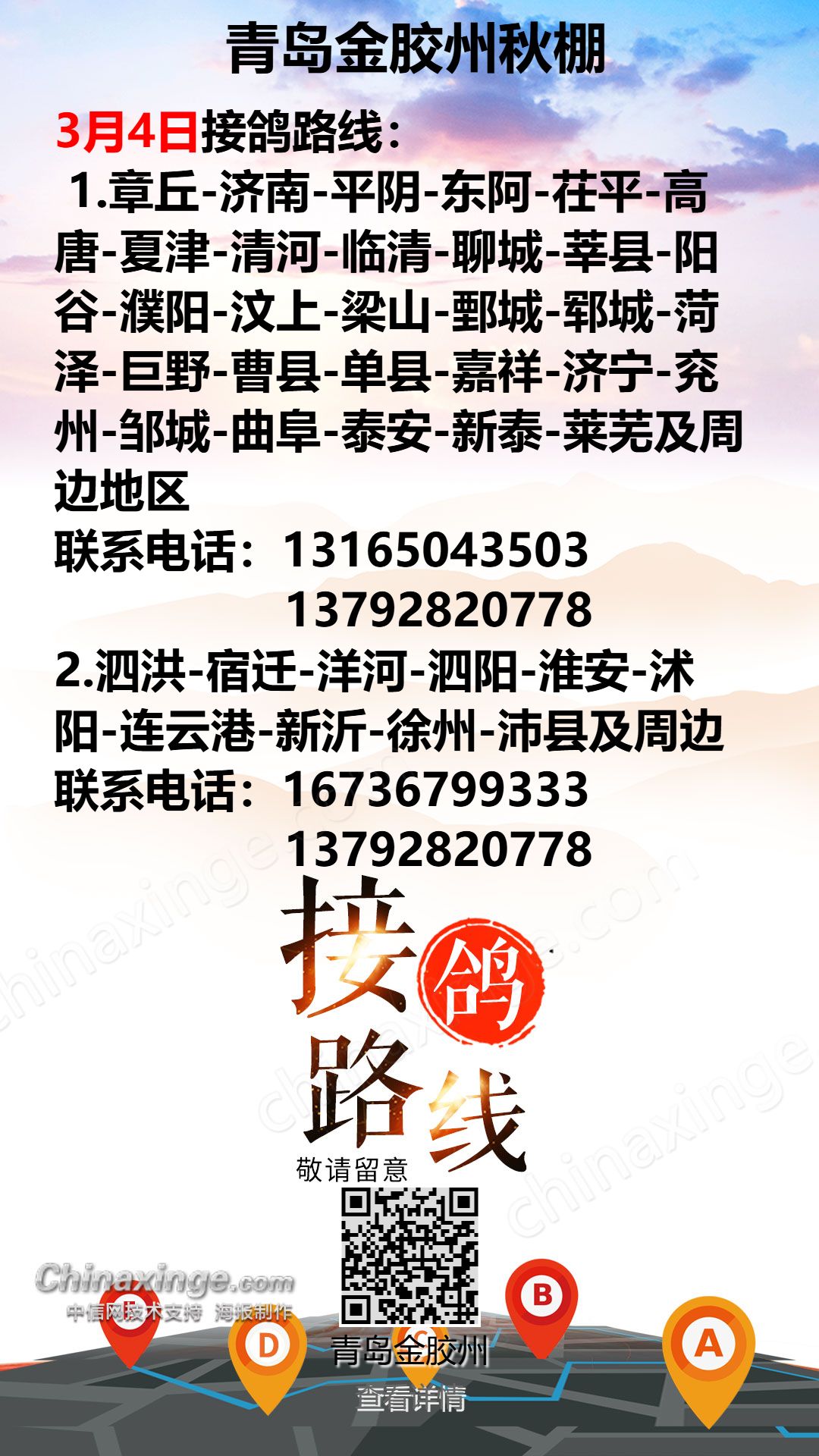 青岛金胶州秋棚3月5日接鸽路线(1)