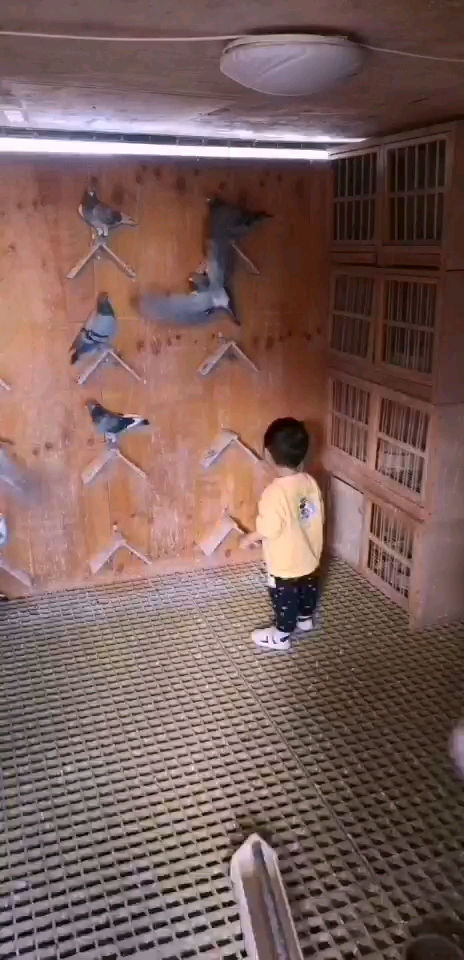 鸽界“小传人”:两岁宝宝到鸽棚抓鸽子