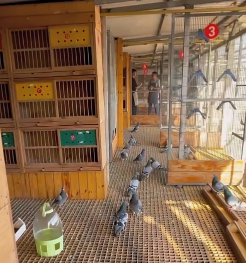 现在不是有定制的那种一雄双雌、一雄三雌的那种巢箱吗?如果在那里边生,出赛不好。我说的这种方法可以出赛。首先这雄鸽要有一个单独的小空间,配3个雌的话,早中晚各一个,配完就拿走。雄鸽不能让它占巢箱。如果占巢箱,它容易盯上一个雌,就不理另外两个了。