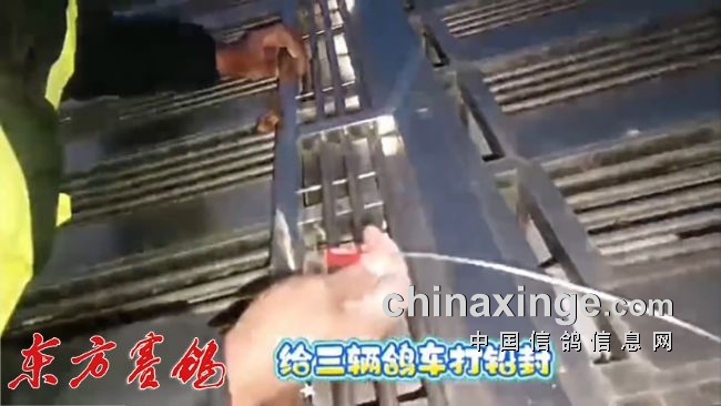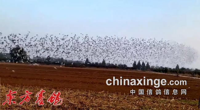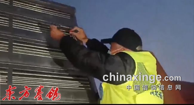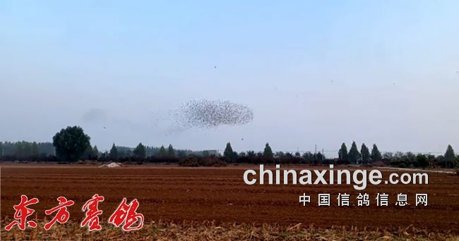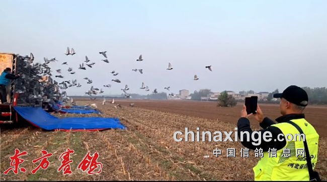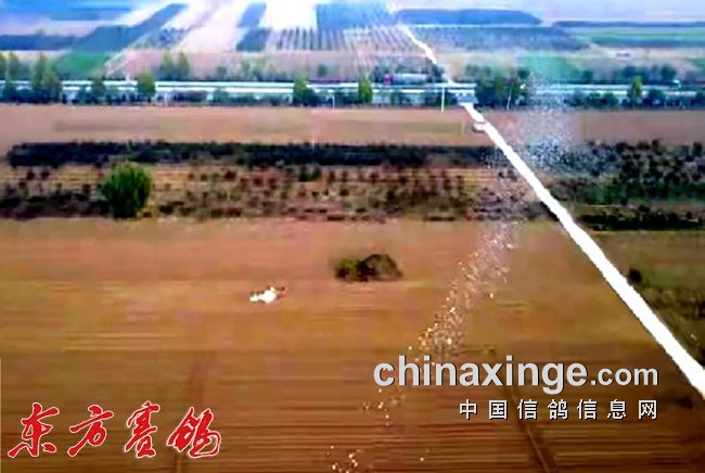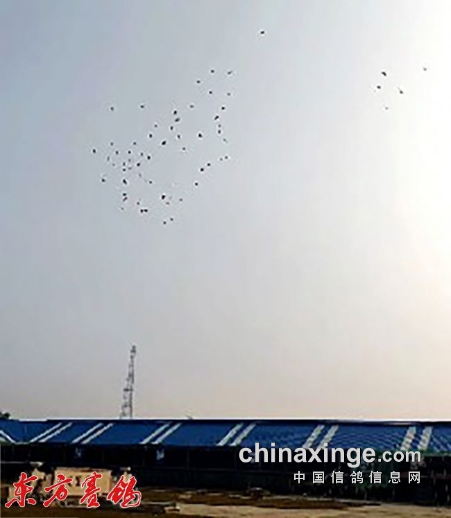 开笼:邢台市清河县的早晨天空晴朗,司放地选择在一片广阔的田野上,三辆鸽车在放飞地一字儿排开。7点12,太阳已跃过树梢、电线杆,天空能见度良好,司放长一声“开笼”令下,三辆鸽车同时开笼放飞。9195羽宏冠小将如穿云箭般地冲出鸽车,在空中化作一条巨龙,浩浩荡荡一路向北,勇往直前回家。放飞过程完美。