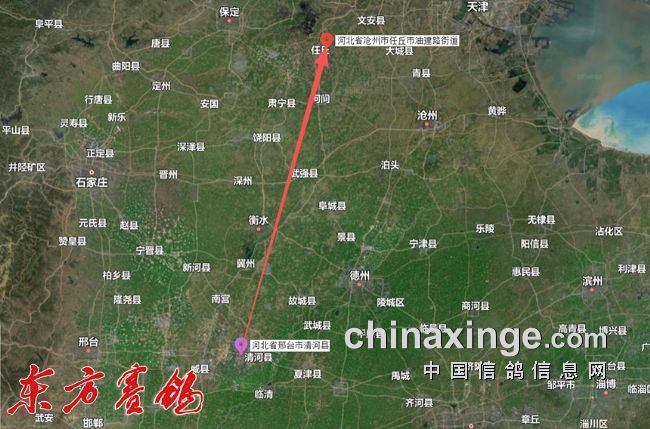 气象:赛线天气以晴为主,司放时清河县气温8.7℃,归巢地任丘市白天最高气温17℃。赛线以顺风南风为主,风力2级;公棚所在地任丘市则是2-3级的顶风东北风。总体看气象条件适宜赛鸽飞行,顺风助力赛鸽飞行,至于赛线末端的顶风,对训练有素的宏冠战将来说小菜一碟无所谓啦。