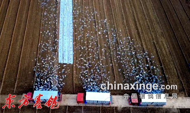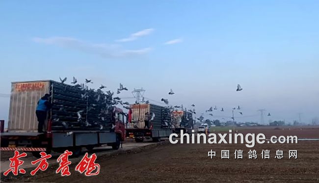开笼:司放地南乐的早晨天空晴朗,微风轻拂,清晨6点50日出,7点16分,东方呈现一片彩霞,于是放飞啦。三辆赛鸽车南边一侧的笼门同时打开,宏冠小精灵气势恢宏地展翅跃上天空,在空中一个90度的华丽转弯,一路向北跃上了回家的600里天路。