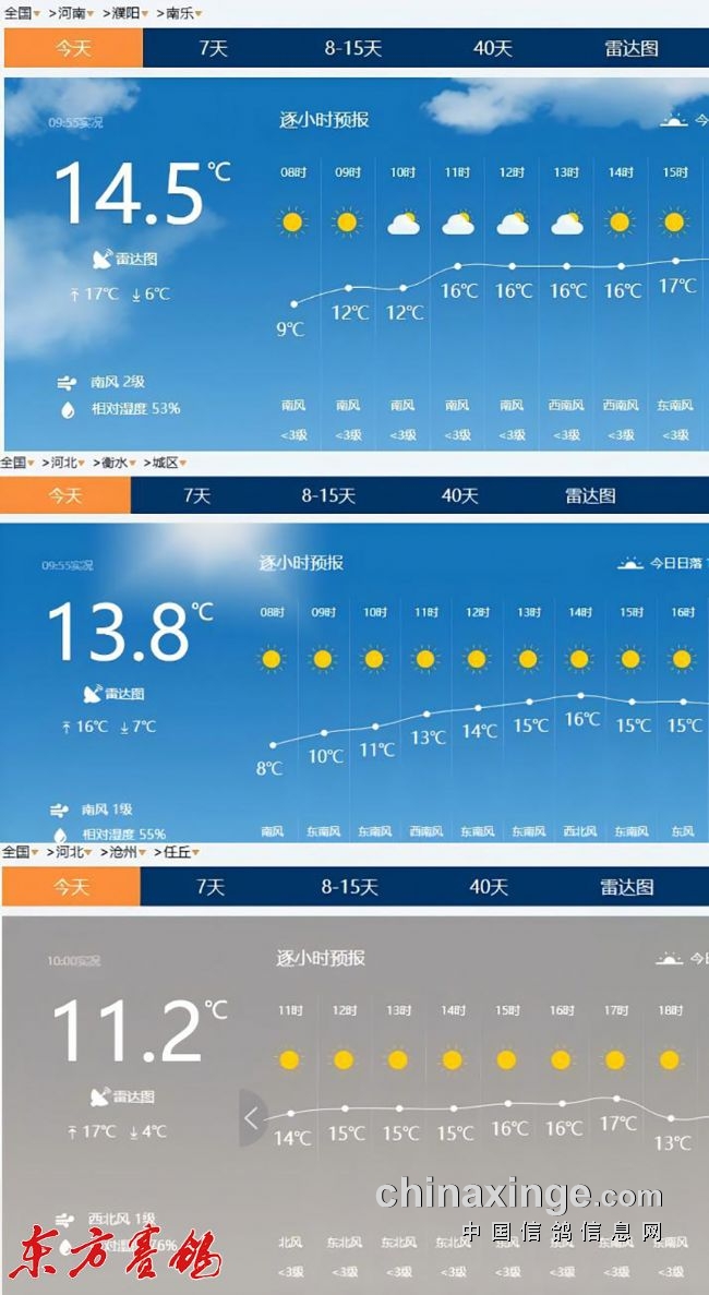 气象:司放时南乐县气温5.8度,整条赛线气温最高的是公棚所在地任丘市的17度。查了一下赛线沿途威县、衡水等各城市的风向,东风、南风、北风、东南风、西北风和东北风,似乎啥风向都有,但主流风向是与赛线同方向而行的西南风为主,风力在1-2级,有助于赛鸽飞行。总体看,今天的天气适宜赛鸽飞行,宏冠勇士摧城拔寨攻克这一关势在必行。