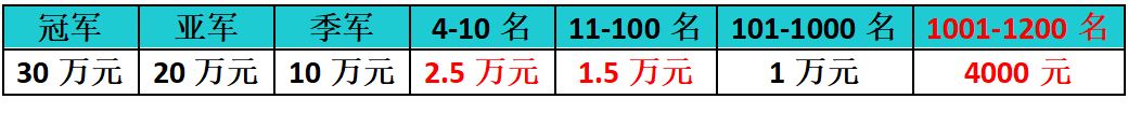 今年是宏冠公棚秋赛的元年,规程中决赛录取是1000名。奖励如下: