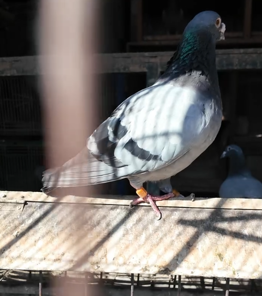 我家里什么配的都有。早年养鸽子,大家不习惯近亲配,说母子配不能放,我也放了。我就想它们血统好,想保留这些血统。要想延续下去,你必须得回血。那会就想先配着、把它留下,出的灰白条,飞了亚军。600公里飞的也是亚军。