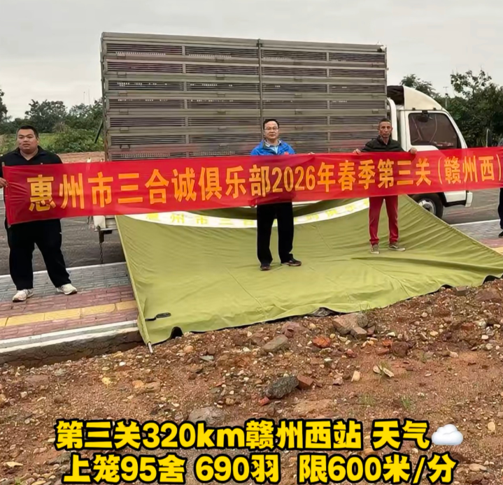 4月15日清晨7点30分,广东惠州三合诚俱乐部春赛第三关在赣州西站开笼放飞。比赛一共集鸽95舍690羽,参考空距320公里。本关有效分速限制在600米/分,期待小将们飞夺佳绩!