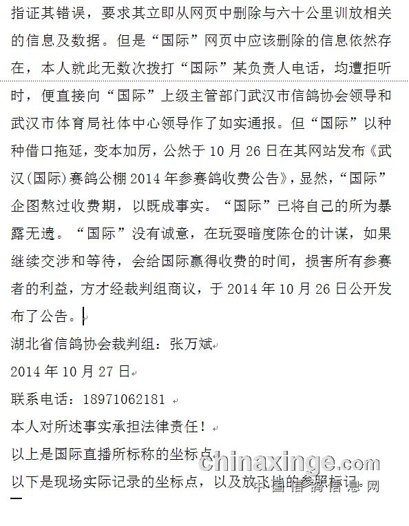 湖北信鸽协会裁判组长张万斌的公告(下)