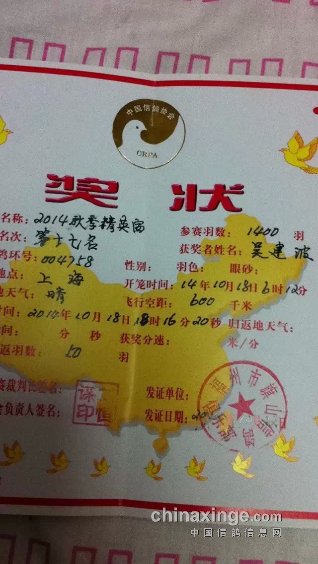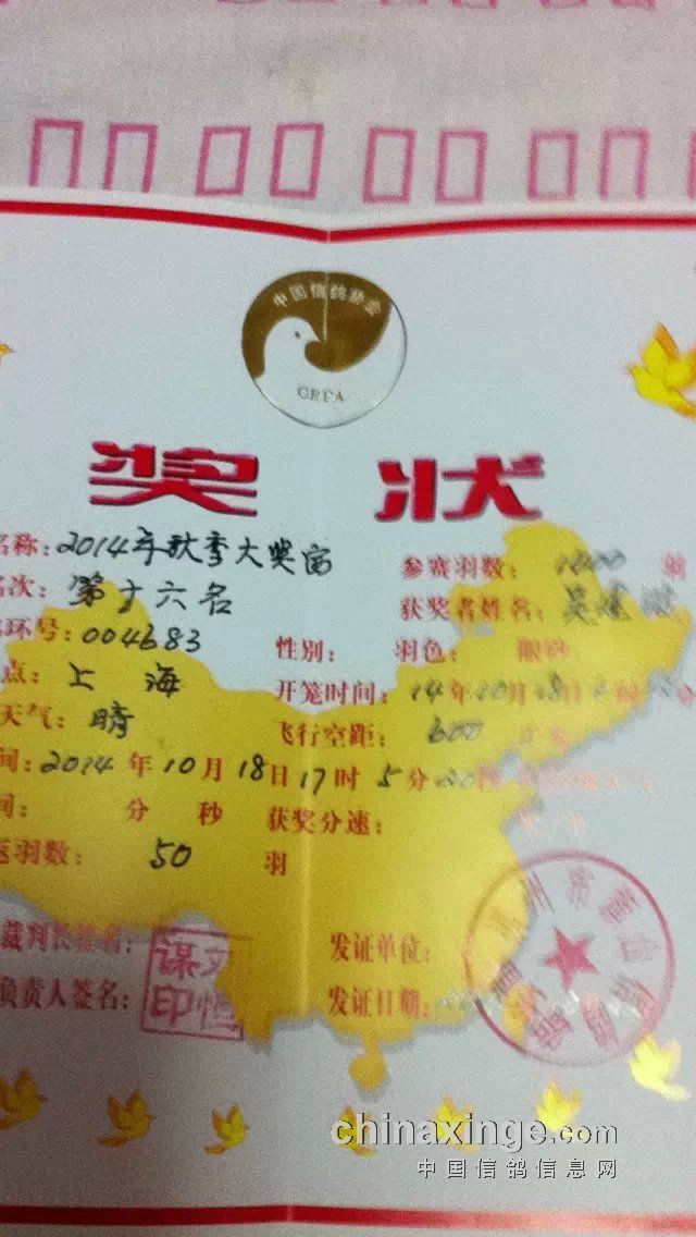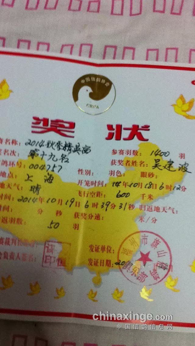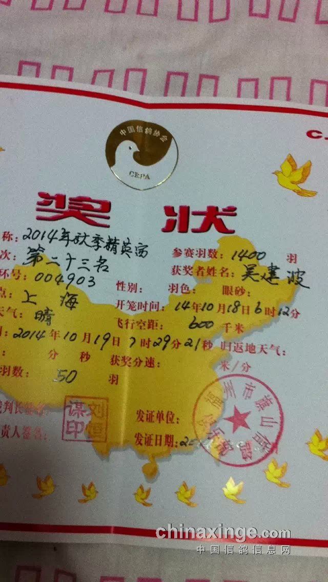 第一年养鸽首赛夺奖四羽(图)