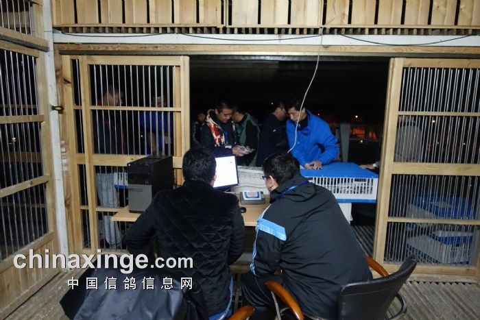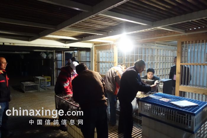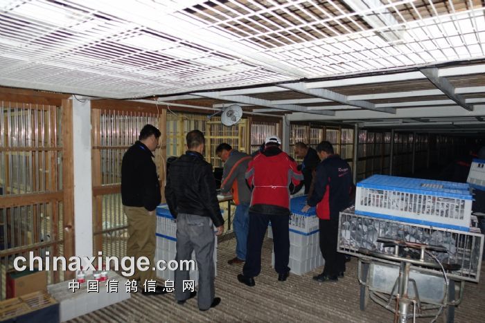 2014年11月5日晚上,北京市信鸽协会委派裁判组对惠翔“中国红”国际赛鸽峰会的大小棚进行查棚工作。经过对存棚鸽的逐一检查,大棚验鸽5278羽,小棚验鸽4319羽。以下是查棚图片: