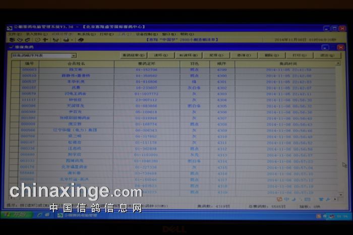 2014年11月5日晚7时由北京市信鸽协会委派的裁判组对2014北京“中国红”国际赛鸽峰会暨中国·北京惠翔国际赛鸽节进行查棚工作。经过对存棚参赛鸽逐一拆封集鸽足环封条、核实足环号码、比对赛鸽羽色、再次密封足环等验鸽流程,由裁判组人工检录并确认无误,共计查棚验鸽4319羽,特此证明。以下21羽参赛鸽更换电子环: