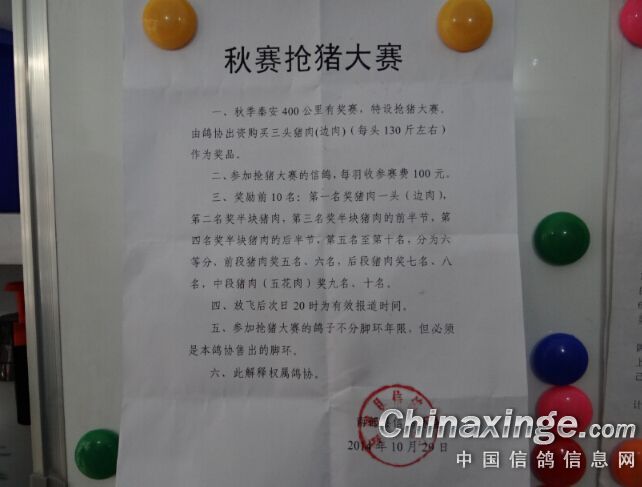 四川省南充市南部县信鸽协会在“秦安”400公里的赛事中取得了圆满成功,协会领导班子特意选在星期天在协会举行400公里前十名和双关鸽王前八名的拍卖会,并为“抢猪大赛”的获奖得主颁发猪肉。此次拍卖会员的积极性很高,气氛很融洽。愿南部县信鸽协会蒸蒸日上,明天更美好!