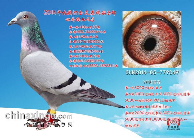 2014年北戴河金友赛鸽俱乐部金友挑战者杯四关鸽王大奖赛已于11月初圆满落下帷幕。为方便鸽友,2014年颁奖及拍卖大会移至北京市丰台区(西五环梅市口路下,李家大院饭店),拍卖日期11月17日,下午2:00时展示获奖鸽,下午3:30拍卖(拍卖四关鸽王1-100名及单关前20名获奖鸽),望广大鸽友相互转告,如约而至。金友赛鸽俱乐部欢迎您的到来。