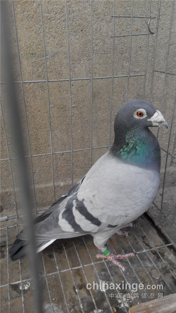 此鸽昨天又入驻我棚,12年夏天朋友把它送给我,原因是把自己刚出壳几天的幼崽叨死。刚开始朋友以为是别的鸽子占窝掐架误伤的,观察后发现原来是它自己干的坏事,小鸽子被它从下颚把皮撕开。以前也没犯过这样的毛病,当年出第三窝就有了这样的癖好,所以它就到了我的棚中。秋天子代公棚又飞出了成绩,我就主动把它送还给朋友。