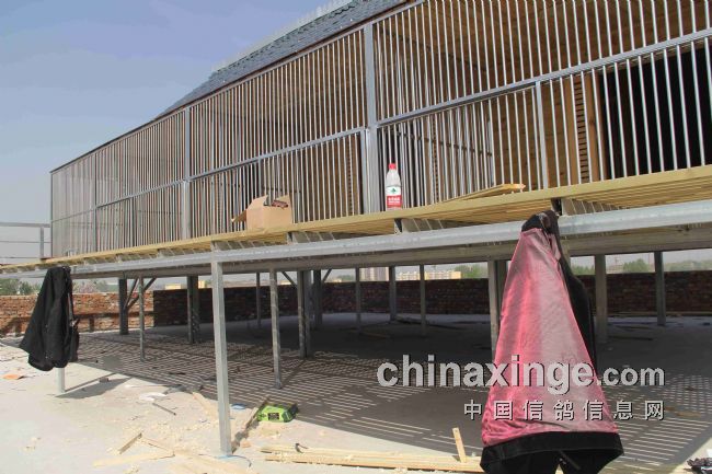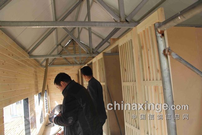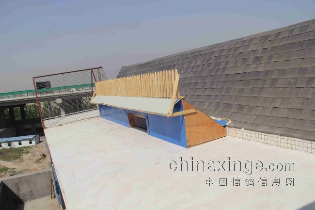 今年首批7个鸽棚,基本上都是按照周围的环境条件设计,每一个鸽棚的外观和内部格局也不尽一样,充分体现了职业化教练员的个性。就连房顶的颜色也不一样,有的是蓝色的,有的是瓦灰,还有的是黄色的。在格局方面,有的有幼鸽平台,有的是集中进门洞,有的还分雌、雄鸽舍等等。