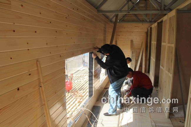 总体来说,最小的鸽棚有四间鸽舍,最小面积大于40平方米,鸽舍内部全部是木结构,有晒棚,有过道,有推拉门,有遮光板,有排气孔,有地网,有巢箱等等。
