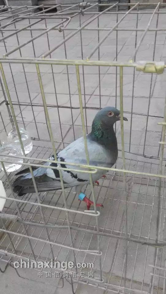 一只只小家伙都在自由活动,两只刚出窝的幼鸽被其它的成年鸽子追得乱跑。这时,栖架上的一只鸽子吸引了我,第一感觉是,这只鸽子不是我的。进棚将它抓住,这是一只砂眼灰雌天落,手感相当不错,羽毛薄而有力,一字尾,特别机灵,尾巴有一个章,应该是协会或俱乐部的参赛鸽。展开翅膀,翅膀也有一个章,参赛鸽无疑。仔细观察了一会,将它放到笼子里。