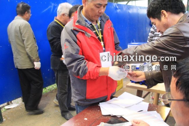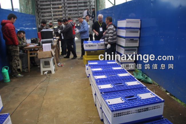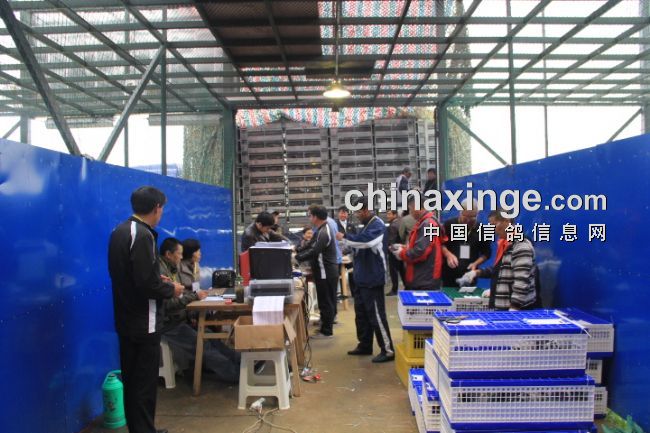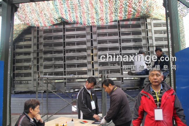 我应公棚刘伟林邀请,专程乘飞机从西安赶到上海黄金海岸公棚,到达公棚已是下午14时,当时公棚驻地还下着小雨,集鸽工作已经接近尾声。在集鸽现场未见公棚人员,全部工作由裁判员进行,严格按照中鸽协《信鸽公棚竞赛管理办法》执行,科学严谨,一丝不苟。