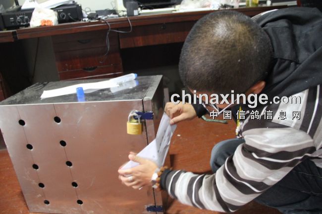 在集鸽之前,裁判员已经驻棚监督了两天,所有存棚鸽子的鸽舍用铅封和封条关闭,需要给鸽子喂食和喂水时必须在裁判员和公棚工作人员共同监督下进行,完成后继续封棚,认真负责,绝不马虎。