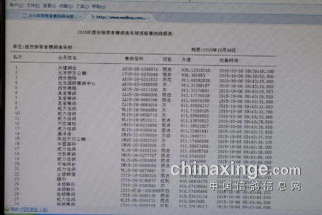 西安探索者俱乐部2015年秋三关赛落下帷幕,并定于本月27-28日在西安东郊半坡湖酒店举行颁奖暨获奖鸽王拍卖大会。届时将有来自全国各地的赛鸽爱好者和参赛者聚集,共享探索者俱乐部赛事的辉煌,目睹鏖战雾霾、阴雨、沙尘,穿越沙漠、黄土沟壑、山岭,杀出重围的72羽鸽王,迎接最兴奋的时刻。