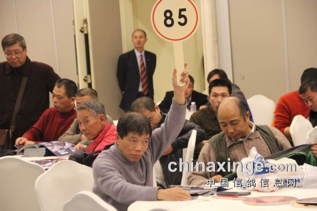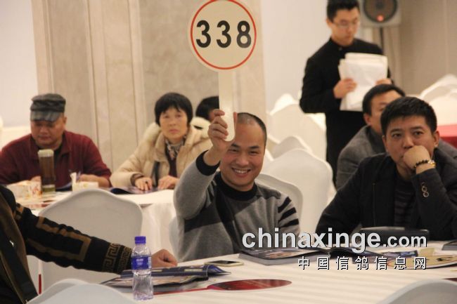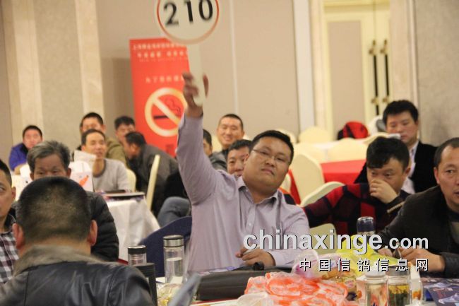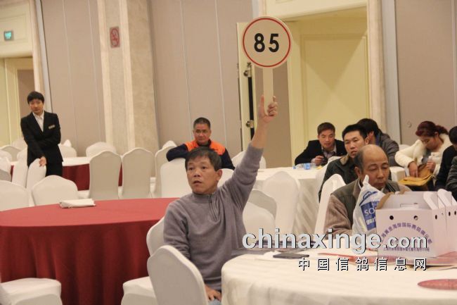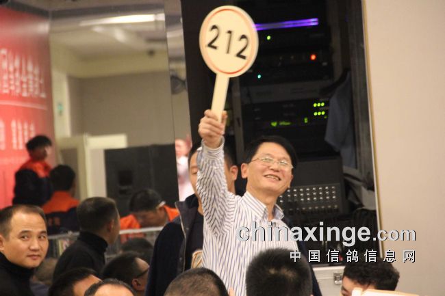 本场拍卖成交价最高的是决赛5名,鸽王冠军被鸽主以50万自己拍回,因为该羽鸽子给鸽主赢来了数百万的奖金。决赛冠军是上海的鸽子,结果被江苏徐州鸽友以20万拍走,另外,还有决赛11名鸽子也拍出了21万的高价,其它高于10万成交价的鸽子有十二羽之多,而高于万元的比比皆是,总成交量要远远高过去年,再次摆脱了上海公棚获奖鸽拍卖价低的魔咒,换来的是要拍好鸽子快来黄金海岸公棚。