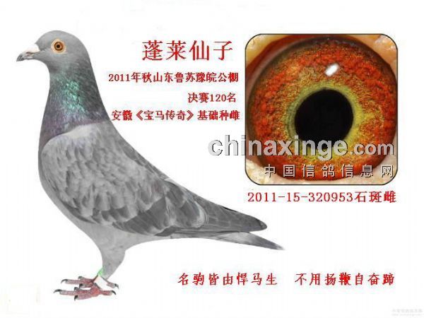 而这羽小雄选配的第一配雌“蓬莱仙子”,则是一羽赛绩鸽,获得2011年秋山东鲁苏豫皖公棚决赛120名。这一配对只作出一孵幼鸽,在今秋的竞赛中,双双打到500公里。其中,作出的一羽“182”雨点黄眼雄鸽,在第一关230公里获得亚军,第二关300公里获得18名,第三关500公里遭遇“11.19黑色星期四”,同孵双双丢失在阴雨雾霾之中。