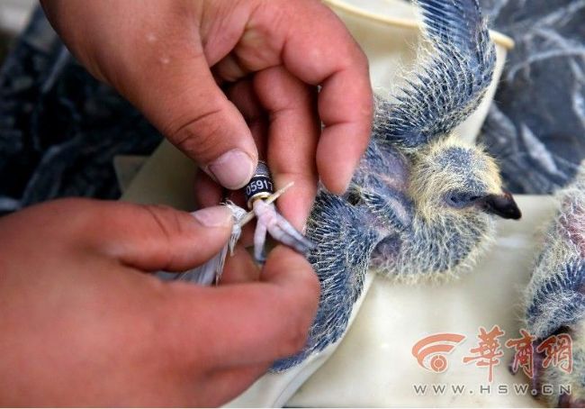 赛鸽的记忆非常好,所以在买卖鸽子时,一定要在家飞之前,一旦试飞,鸽子就记住自己的家。每羽鸽子一出生就套上了一个脚环,像人的身份证一样,上面有7位数的编码,鸽子的一生永久拥有着这个编码。