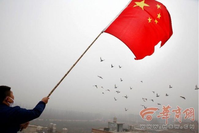 到下一个训练时间大约6个小时后,到了下午四五点钟,宋涛拉开布帘子,把鸽子一羽羽赶向天空,他挥动着手中的国旗,口中吹着口哨,看鸽子翩翩起舞……