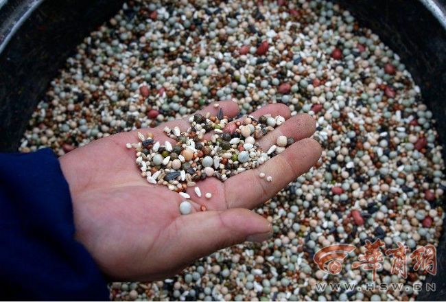 高剑平在一旁正忙着配鸽子食,他给一大筐鸽子食里加入半簸箕玉米,然后拿起一个瓶子,倒出些许液体拌入其中,华商报记者看到,这是“赛鸽专用活性菌”。高剑平说,每个人养鸽子训鸽子都有自己独特的配方;他的鸽子食由玉米、大豆、红豆、高粱、小瓜子等16种配料配制而成,主要是提高免疫力和营养。在养鸽子方面,尤其是赛鸽,每个训鸽人和鸽子主人都有自己的绝招,一般都秘不示人。