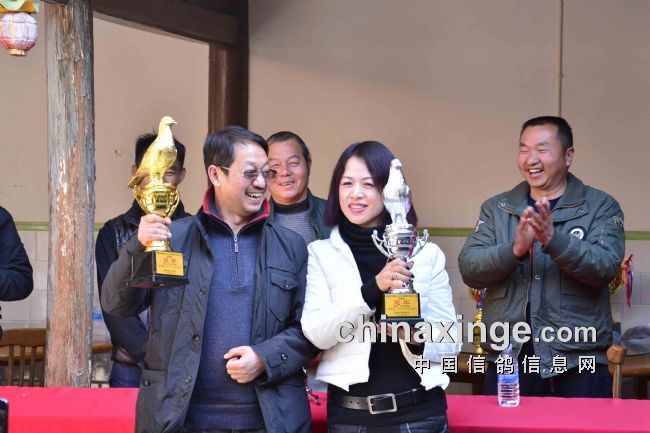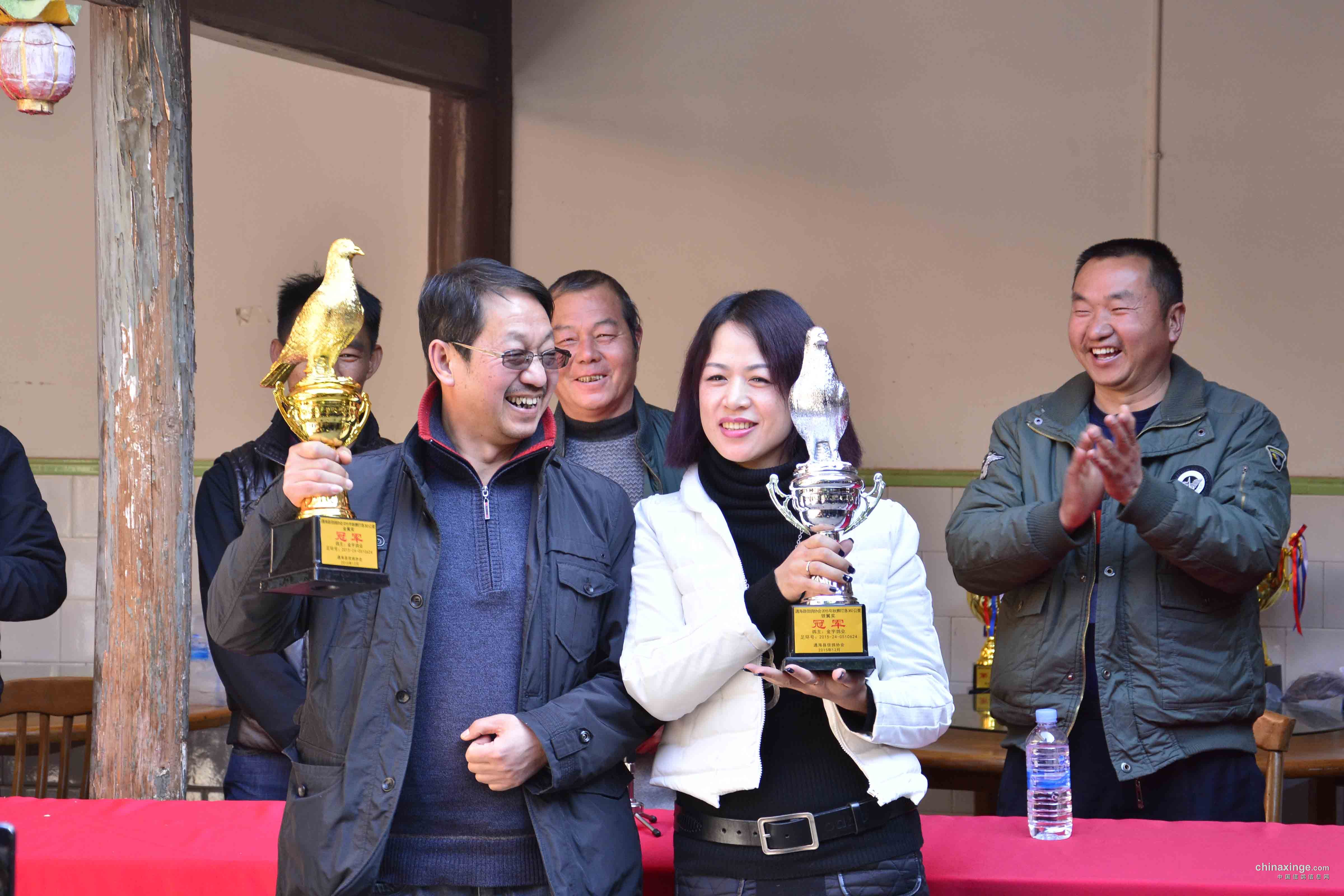 此次大赛冠军(获奖鸽主:兴宏鸽业)以13000元拍走