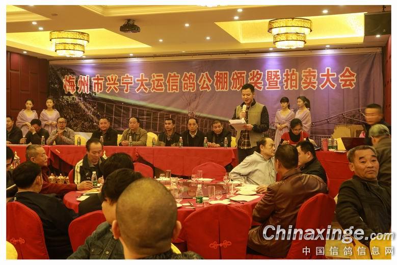 2015年12月27日,首届广东梅州大运信鸽公棚拍卖大会 在兴宁市桦昌大酒店多功能报告厅举行隆重颁奖拍卖大会。本次拍卖会聘请全国金牌拍卖师上海王志军主拍,都是来自全国的名家名血的优秀赛鸽。