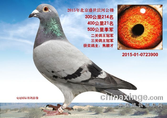北京盛世滨河国际赛鸽公棚决赛已于1月8日落下帷幕,长春鸽友震山虎的2015-07-0671506麒麟花力压群雄夺取冠军,亿丰万豪、焦顺才的两羽灰鸽分别获得亚军、季军。按照公棚计划,将于1月20日在北京石景山区神农庄园举行获奖鸽颁奖拍卖会。