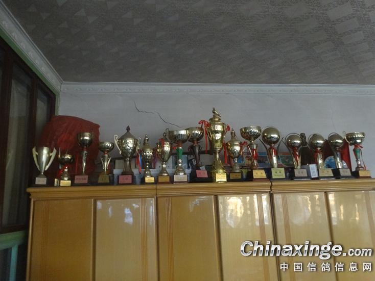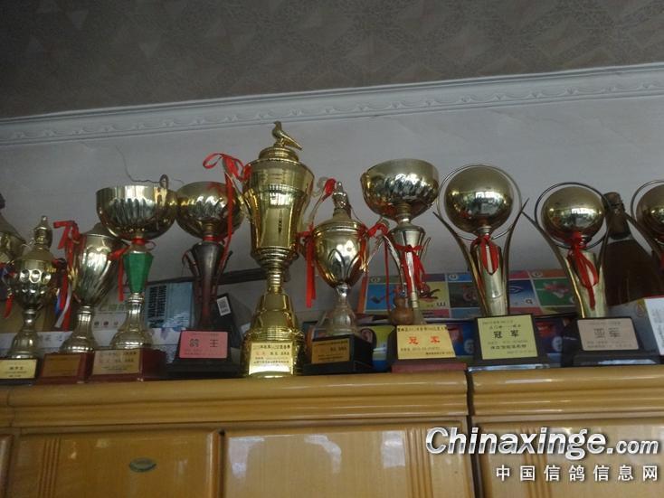 尚海龙鸽子成绩很硬,尤其种鸽都是重金引进:王城建胡本、曲建平詹森、正义公棚的巴龙、曹天义的019詹森等等。在鸽会和公棚鸽子成绩飞得好,奖杯满满一柜顶。
