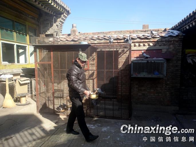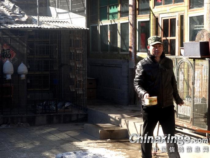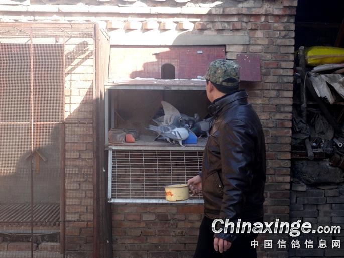 米哥戴着帽子,是刚打扫完鸽棚。