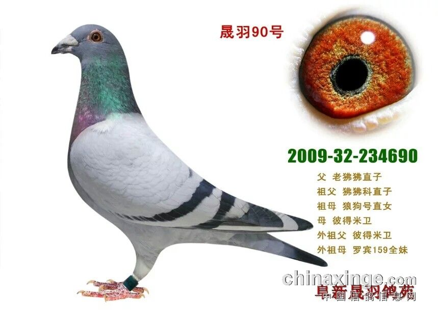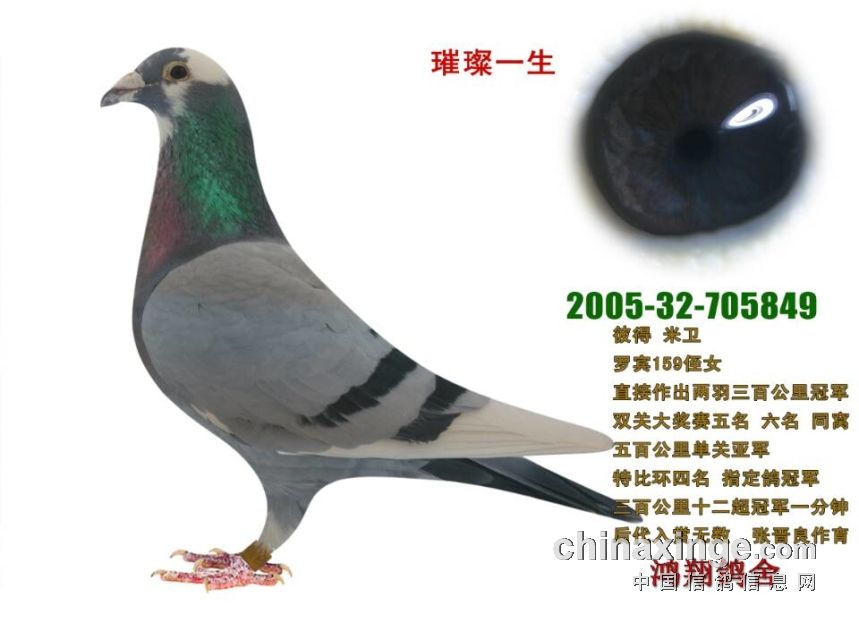上图就是我的米卫老母,直接作出两羽三百公里冠军,双关大奖赛五名六名同窝参赛,特比环四名,三百公里十二名,此鸽晚进棚一分多钟。