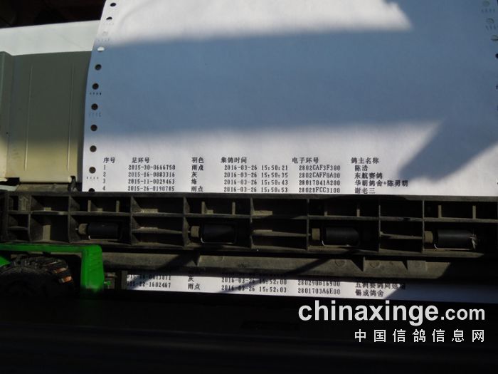 获得名次 鸽主名称 足环号 羽色