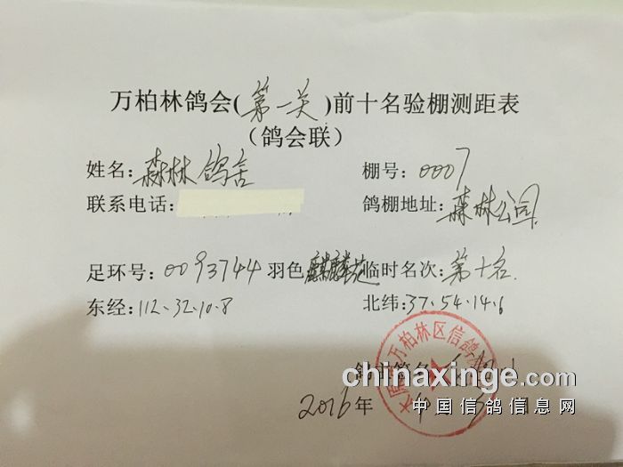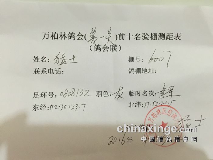 名次 会员棚号 会员名 足环号 赛鸽信息 速度 空距 归巢时间