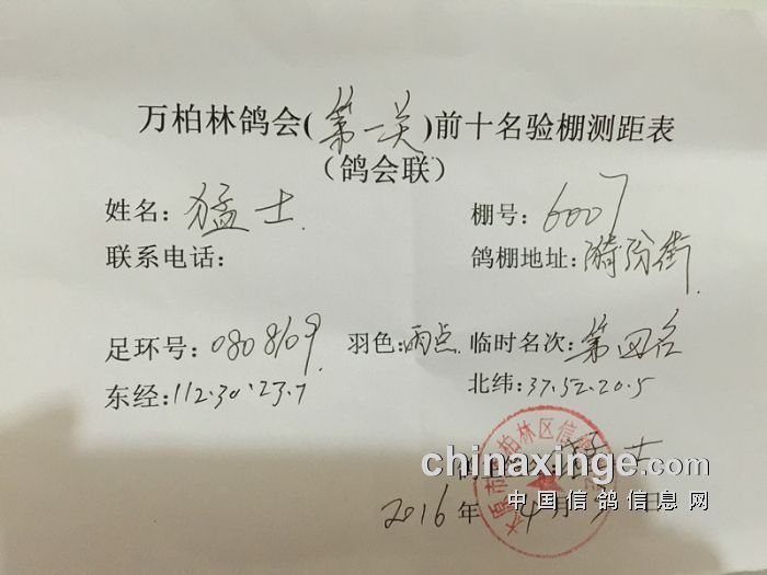 本场比赛,鸽子归巢整齐,不到一个小时,录取名次(600名)就全部报满。至晚上22点09分,当日归巢3615羽赛鸽。以下是比赛前十名成绩:>>详细