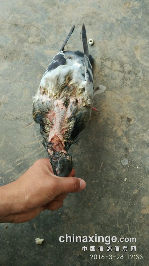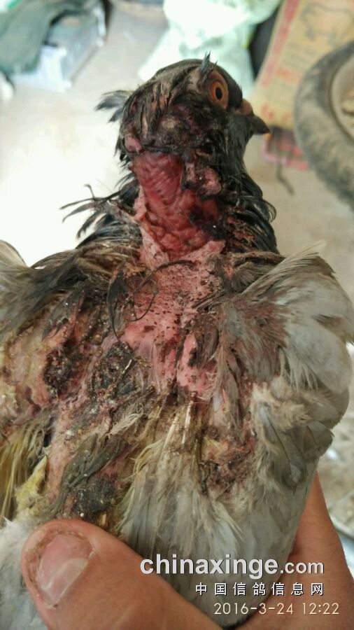 前两年我有羽幼鸽也被隼抓去了嗉嚷,整快皮都掉了,我怕其它鸽欺负它,就把它关在笼子里修养。过两天抓来检查,发现伤的他方有蛆虫在爬,最少有几十条。我就用小夹子把蛆虫夹干净。擦了点双氧水。就扔到其它鸽群里。让它自生自灭,说实话,我估它有分之九十以上会死。可是最后竟然好了,东西都吃不到肚里,伤口怎么好的,反正我一直没搞清楚。