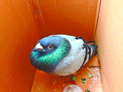 上周,两只鸭子被送走了,这羽鸽子又过起了好吃好喝的日子。昨天,武汉市信鸽协会工作人员说,虽然有编号也难找到它的主人,因为参赛的信鸽不见得都有登记。