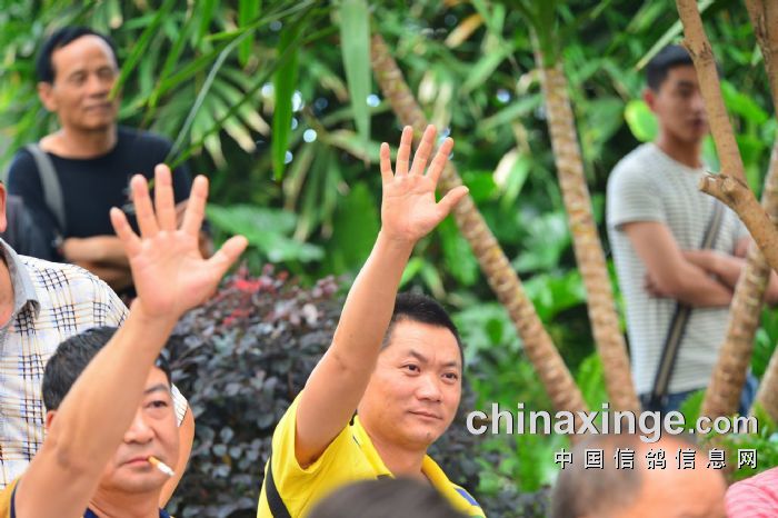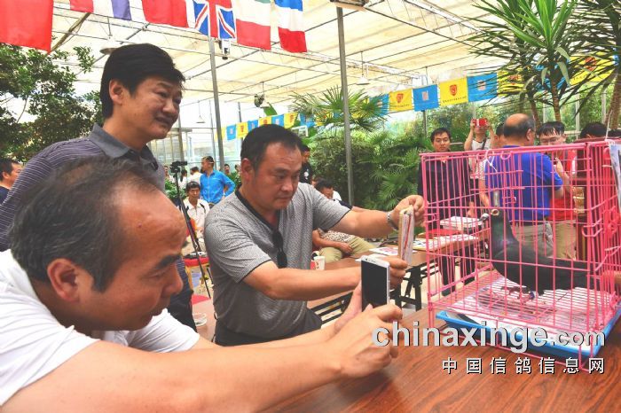 冠军鸽为军鸽,只展示不拍卖。大家争相目睹冠军鸽风采。