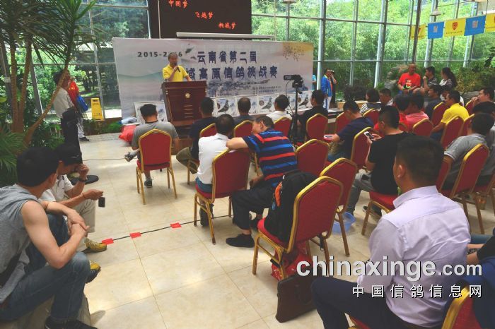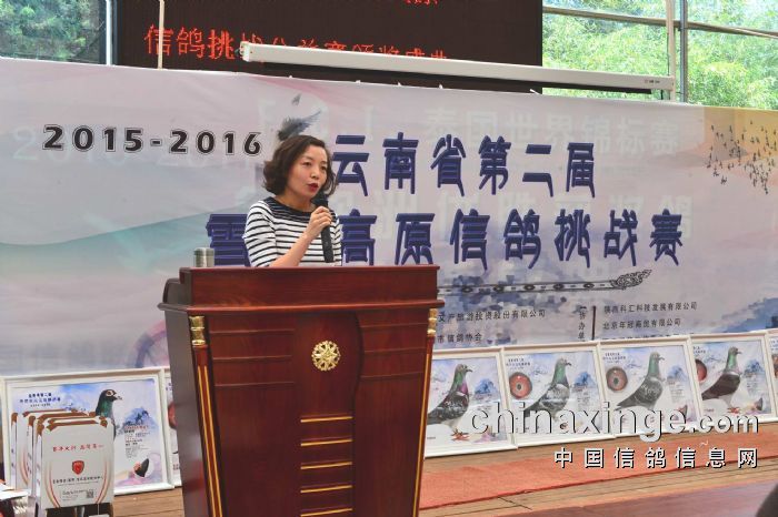 昆明市信鸽协会侍丽华秘书长宣布比赛成绩