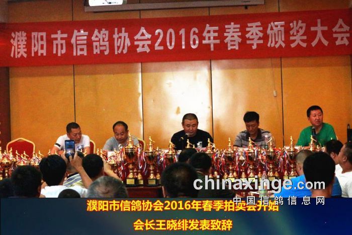 6月18日,河南省濮阳市信鸽协会在克林豪泰宾馆5楼会议室举行了16年春季颁奖大会。会上,春赛300公里、500公里、700公里、1000公里等前十名获奖会员上台领奖。 颁奖结束之后,还进行了各场比赛的获奖鸽拍卖。现场图片报道如下: