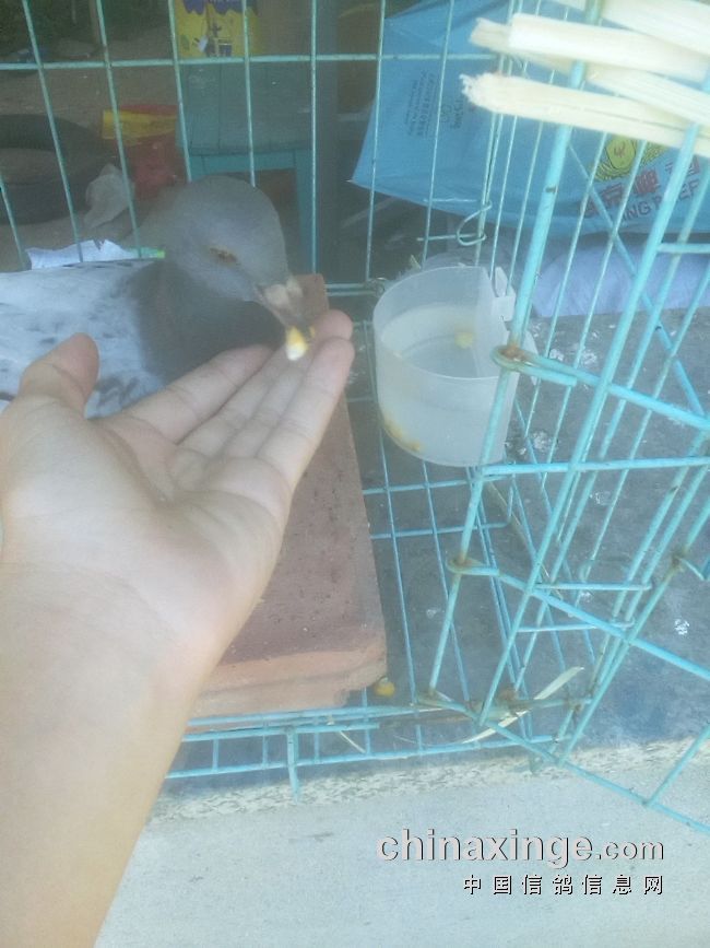 一羽可怜的小鸽子 今天早上,还没开鸽子门,就发现房顶上有一羽鸽子趴着。 我看了棚里没缺鸽子,然后就抓住了它,看见两条腿都折了,胸骨都压弯了,因为腿折了,没法站着,所以只能趴着。拿下后看了这羽鸽子,斑点,看着挺可怜,就给上了点药,给它鸽子料,它只吃玉米,检查没有病。