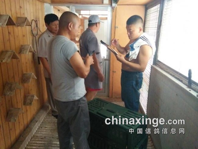 俱乐部工作人在裁判长李振龙老师监督下抽检参赛鸽