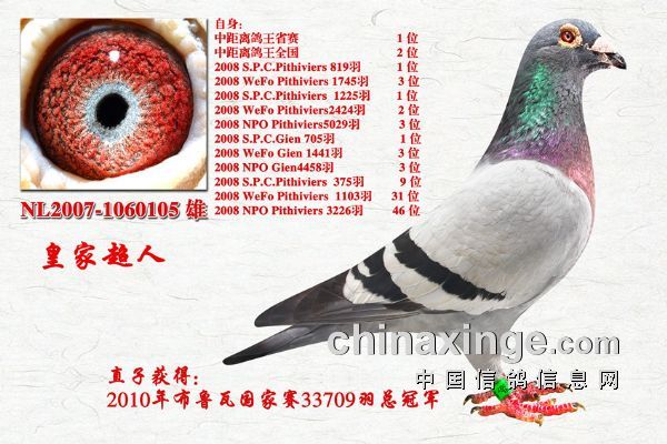 再翻开666神鸟的血统,更是光彩夺目,它的兄弟姐妹,父母兄弟姐妹,爷爷奶奶兄弟姐妹,赛绩写也写不过来。它的平辈们,去年秋赛就夺得威力俱乐部西北线四关鸽王季军,拍卖价25万;今春赛又夺得四关赛鸽王亚军,拍卖价45万。在刚刚结束的比赛中,再收获兰州鼎盛公棚三关鸽王总亚军;北京亿丰万豪公棚300公里9名;翠枫园公棚决赛6名、16名赢房产一套、57名;天津津福公棚决赛405名幸运奖得60万;威力俱乐部特比五关综合鸽王8名,单鸽赢钱过百万,鸽友感叹久久不止。