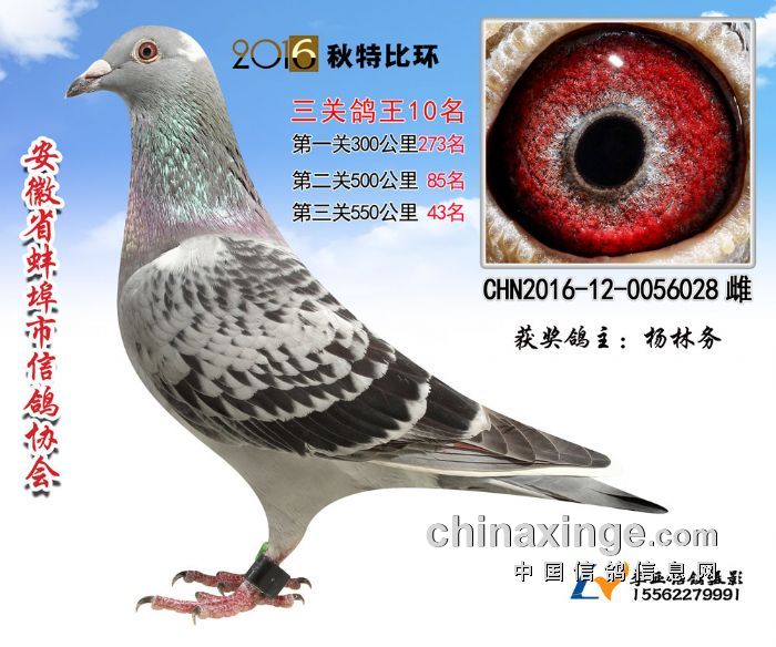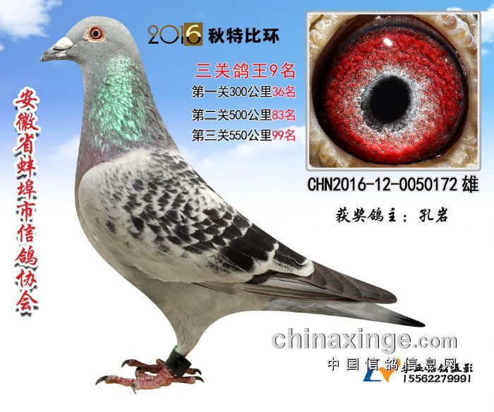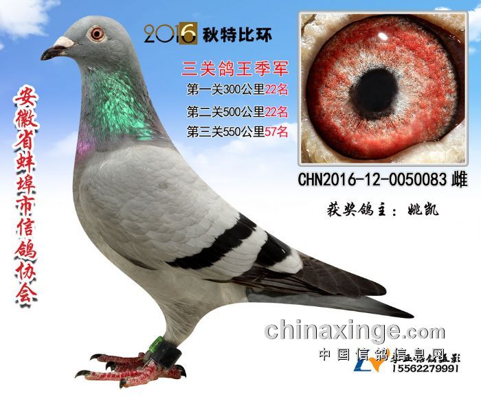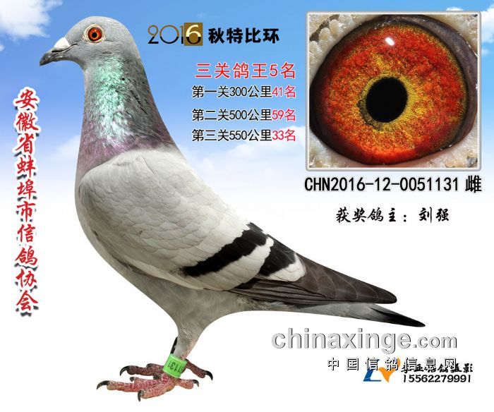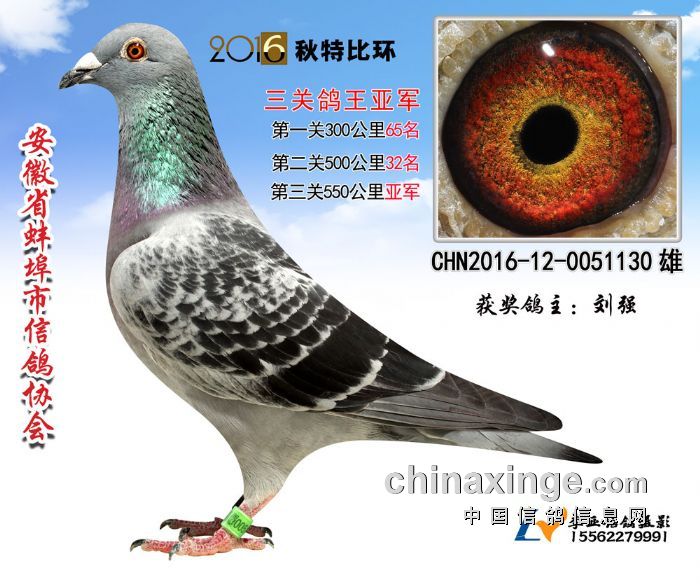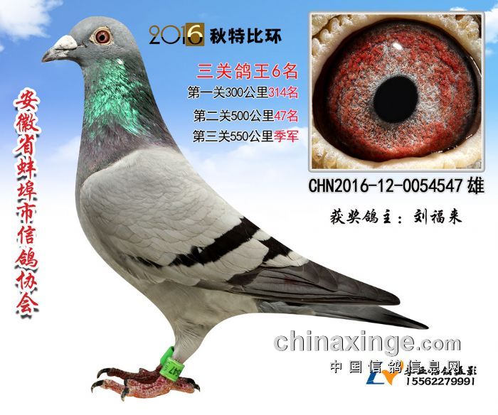 安徽省蚌埠市信鸽协会2016年秋季三关特比环鸽王赛,所有赛程日前已全部落下帷幕。经过300、500、550公里三场比赛,20多天激烈竞争,所有奖项均已出炉:前十名中,刘强一人进入三个名次,包揽冠军、亚军,以及第五名,其中冠军鸽三场比赛进入前50名,第二关500公里获得单关第一名。